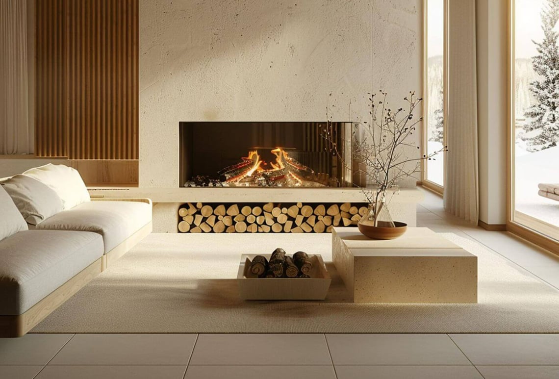 Light, Natural Furniture: Use white or light wood furniture like coffee tables and shelving units with sleek, minimalistic designs. Beige sofas or armchairs with clean lines fit perfectly.