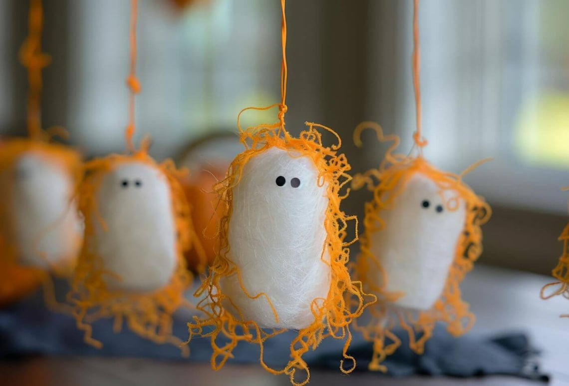 1. Paper Hangings: Cut out ghost, bat, or pumpkin shapes from black or orange paper. String them together to make garlands and hang them across doorways or windows.