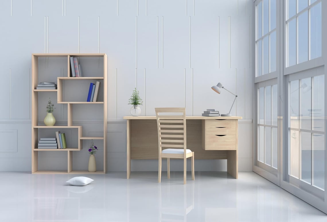 Wall-mounted shelves make the most of the vertical space in a tiny study area. Make use of multipurpose furniture, such as workstations with integrated storage. Reduce mess by organising things with clear boxes or drawers.