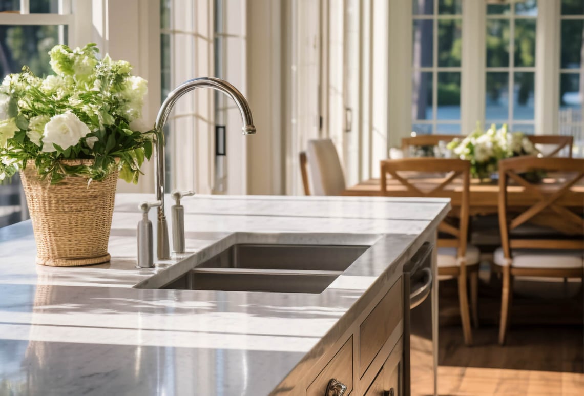 Quartz is like engineered stone with a shiny surface; it gives a sleek and smooth appearance with little to no se амlessness.