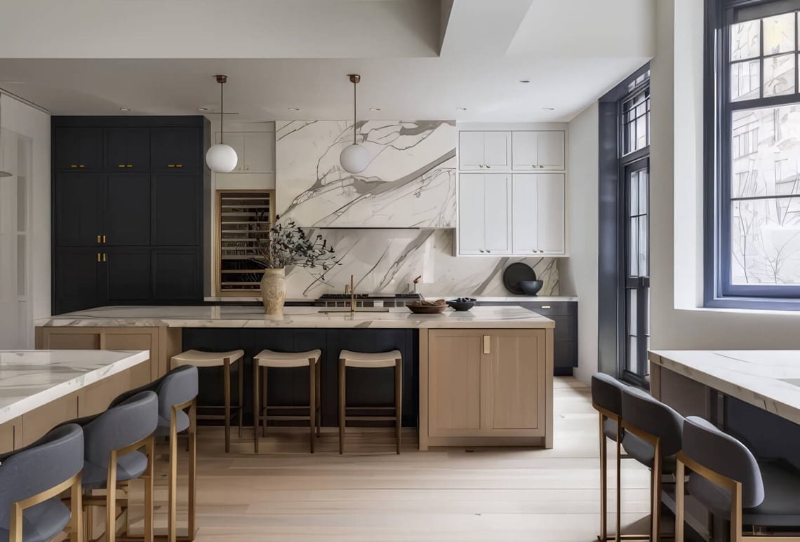 An open-concept kitchen design encourages interaction and makes hosting a breeze. With an open layout, you can easily cook while still engaging with your guests. Consider incorporating a large marble island that doubles as a dining area.
