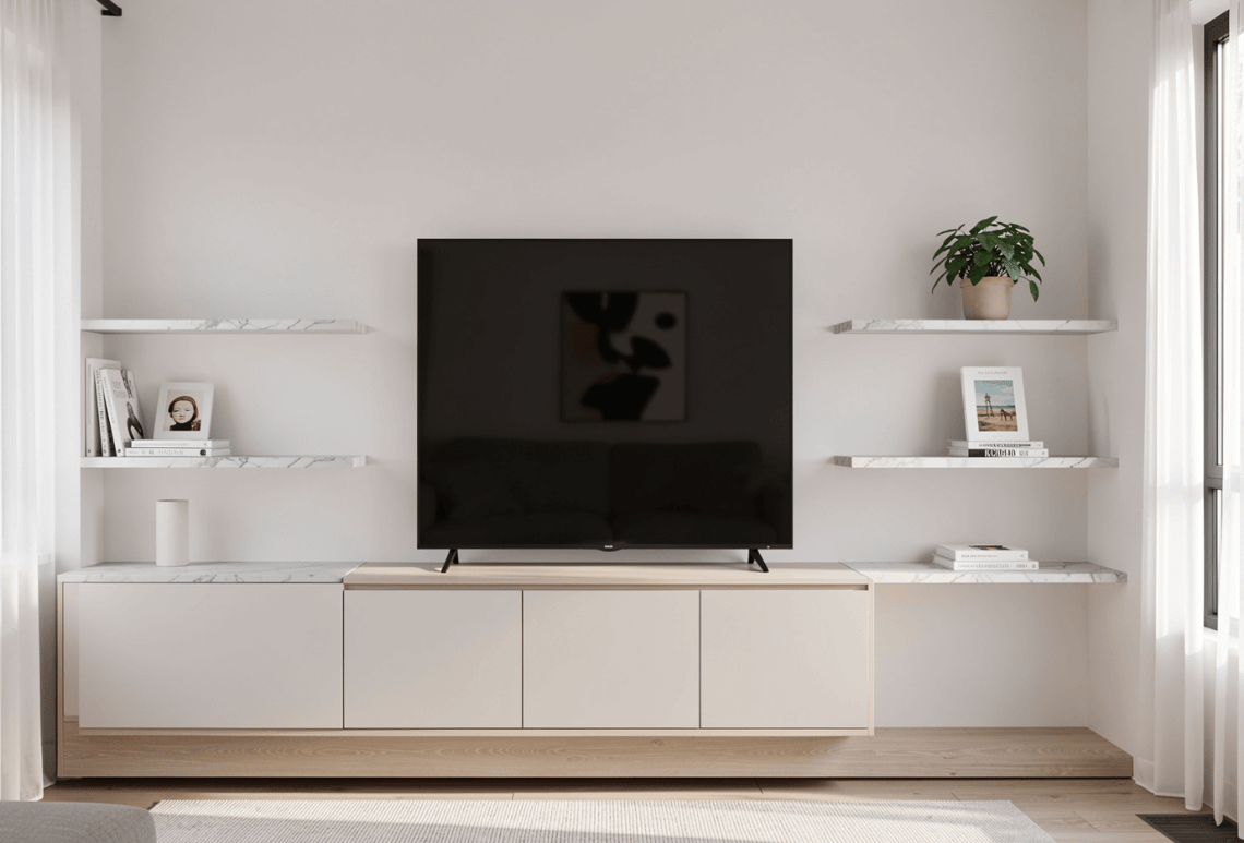 Group similar items together to create a sense of order. For example, place all the books on one shelf and decorative items on another. This grouping makes the shelves look more organised and intentional.