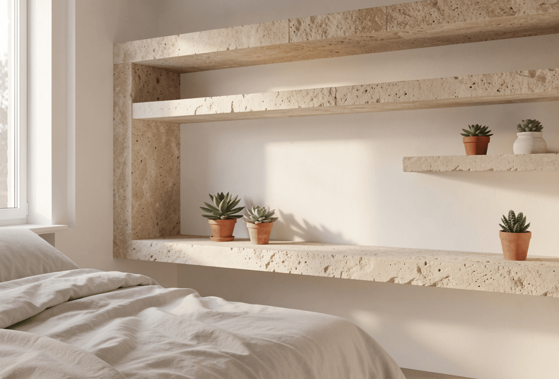 Modern Stone Open Shelving Ideas 2026