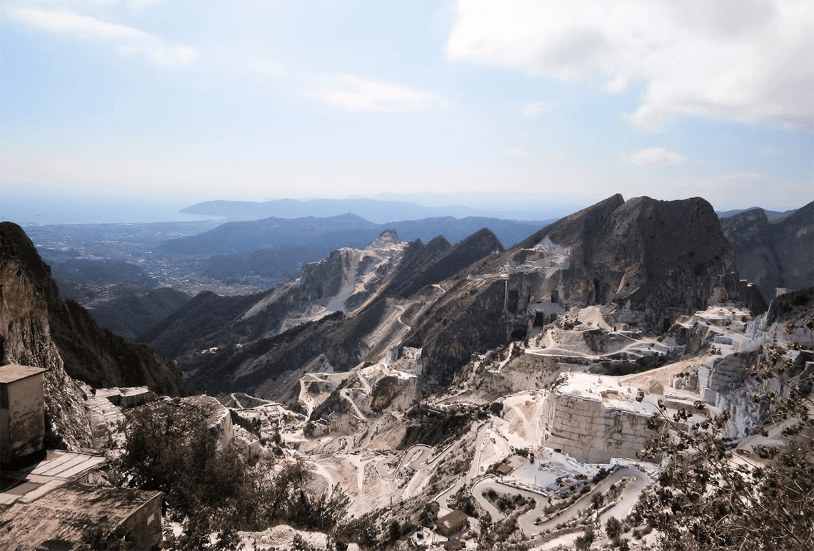 Italy The Apuan Alps above Carrara show evidence of at least 650 quarry sites. The quarries have produced more marble than any other place on earth.