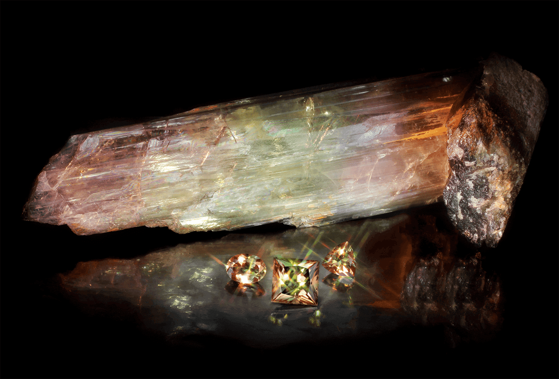 Pink Tourmaline is another gemstone primarily sourced in Turkey’s Yozgat province but also found in the Aydın and Çanakkale provinces. Known as the “rainbow stone,” it can have a variety of different hues ranging from pink to green. It is generally agreed that traces of iron, and possibly titanium, induce green and blue colours. Manganese produces reds and pinks, and possibly yellows. Some pink and yellow tourmalines might owe their hues to colour centres caused by radiation, which can be natural or laboratory-induced.