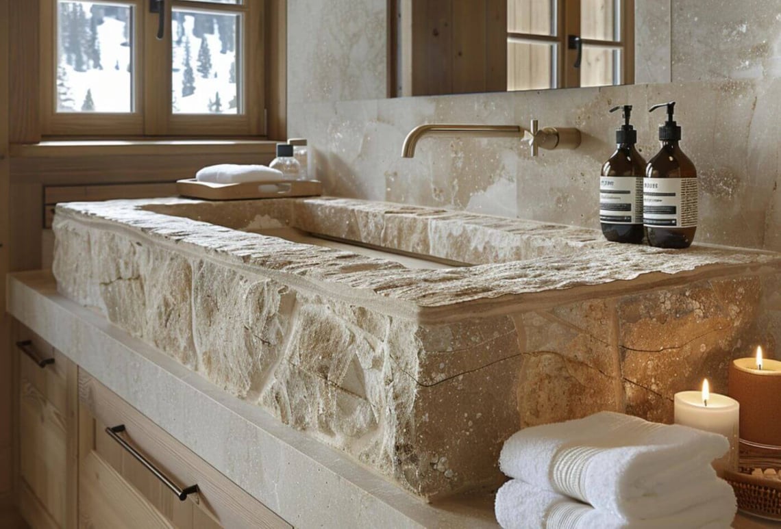 Travertine options are the absolute blend of a tree trunk with the resilience of a stone surface, offering a timeless and practical solution for any space.