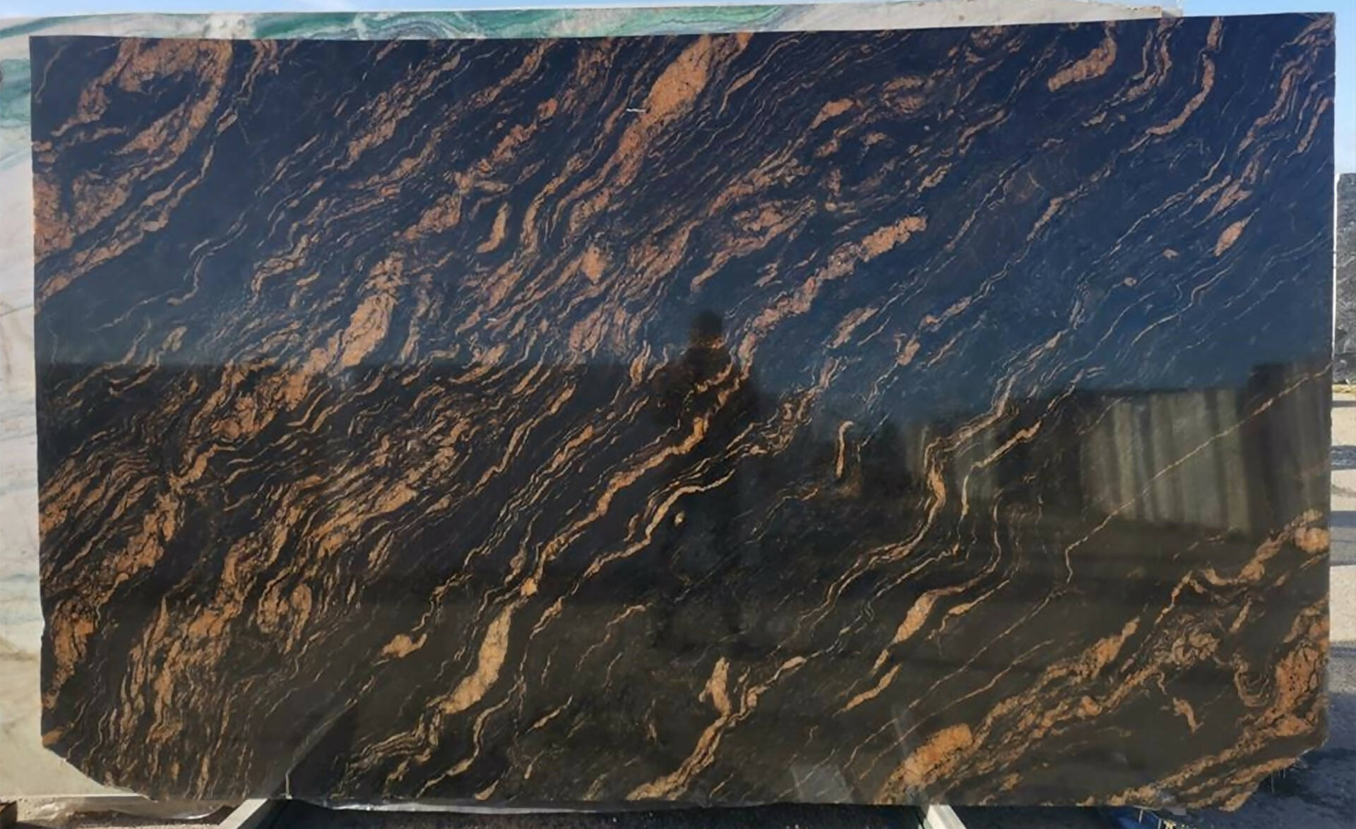 Because Magma Gold is a hard Granite, it is ideal for use as kitchen countertops. Meanwhile, it must be handled with care because it is an exotic stone with a lot of veining. Magma Gold Granite has natural fissure lines and unpolished areas.