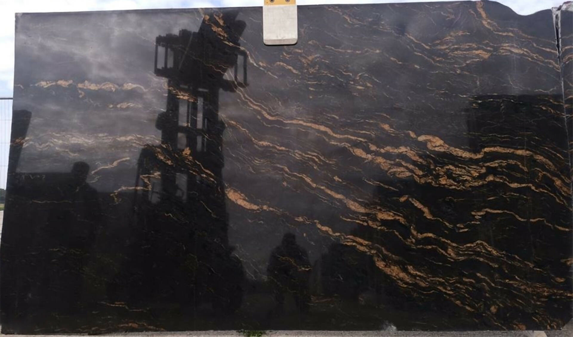 Cosmic Black Granite is a beautiful natural Granite with a highly polished black surface and a cosmic-like spectacle of gold, copper, and white "swirls" throughout. This natural Granite is sourced sustainably from quarries in Brazil and can be used for various purposes. The beauty of naturally occurring patterns similar to marble is combined with the durability and hardness of Granite in Comic Black Granite.