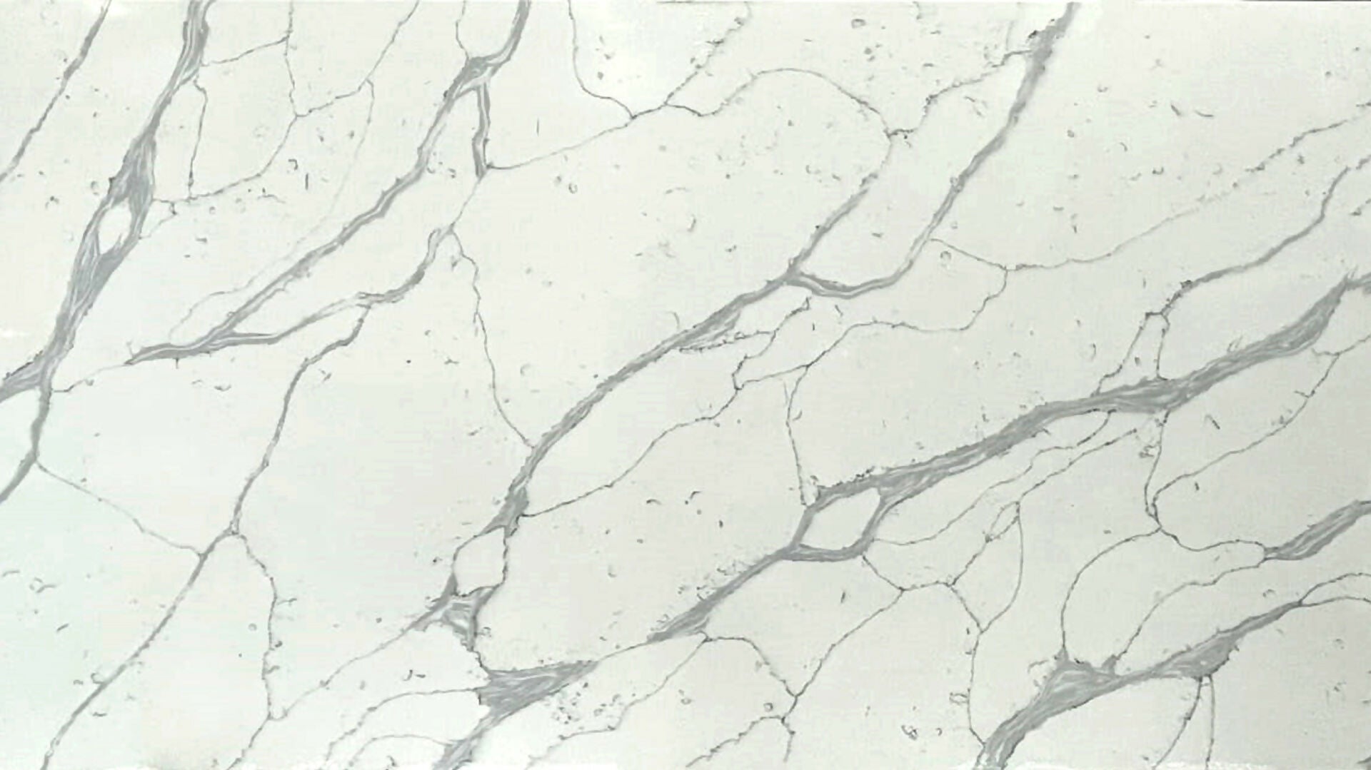 Royal Calacatta Quartz features a striking white surface adorned with intricate grey veins, available in both 20mm and 30mm thicknesses. The polished finish enhances its luxurious appearance, making it a standout choice for modern interiors. This quartz's elegant patterns add a touch of sophistication to kitchen countertops, bathroom vanities, and backsplash applications. Its durability ensures it withstands daily wear and tear, resisting stains, scratches, and heat. Maintenance is effortless, requiring only regular cleaning with mild soap and water to retain its pristine look. Elevate your home's aesthetic with the timeless beauty and strength of Royal Calacatta Quartz.