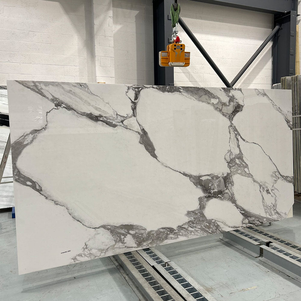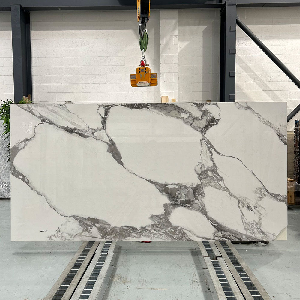 The Massimo Arabescato High Gloss Porcelain slab, which never goes out of trend, blends durability with the beauty of natural stone. The surface is clean and neat, with grey veins reminiscent of luxury Carrara marble; it exudes beauty and cosiness while offering a practical edge. The high-gloss finish enhances its reflective charm, creating an airy, bright, and spacious feel in any setting. Perfect for kitchens, bathrooms, or feature walls, this porcelain delivers the look of premium marble without the maintenance. Strong, versatile, and effortlessly stylish, Massimo Arabescato is an ideal choice for those seeking refined aesthetics with long-lasting performance.