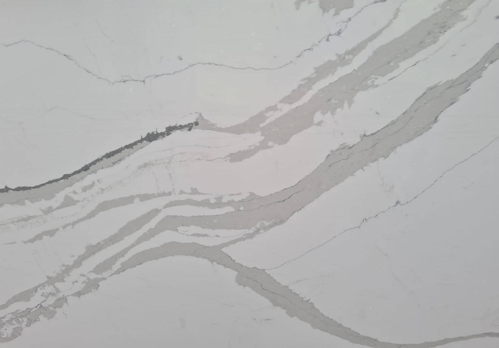 Calacatta Breccia Quartz displays a variety of grey tones that can be seen in its dense veining pattern. Delicate veins and flecks of grey that offer richness and depict a soft grace can be seen all over this stone. This large-scale design in white and pale grey gives you the appearance of marble but the upkeep of quartz. Suitable for numerous uses, including splashback, worktops, and bathrooms, this material is tough and tolerant to heat. The balanced colour scheme of Calacatta Breccia Quartz makes it an attractive option for residential properties and enables you to match it with any decor theme or cabinet colour.