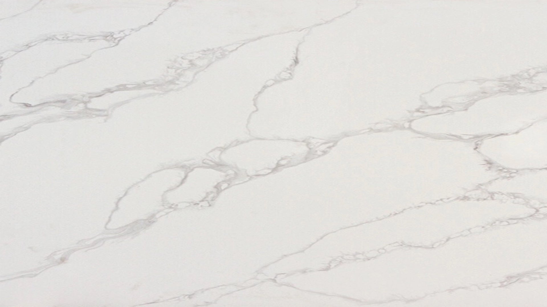 Calacatta Fancy 106 Polished Quartz is a stunning, luxurious white quartz worktop featuring striking veins for a refined, high-end look. It is available in 20mm and 30mm thicknesses and has a polished surface that improves interiors with its timeless elegance and premium finish. The sophisticated design makes it a standout choice for contemporary and classic spaces, offering daily-use durability and low-maintenance benefits. It is an excellent material for creating bespoke islands, peninsulas, and office desktops with tailored edges, combining beauty with resilience for high-traffic areas. Calacatta Fancy 106 Polished Quartz, perfect for kitchen countertops, elegant bathroom vanities, statement feature walls, and custom furniture tops.