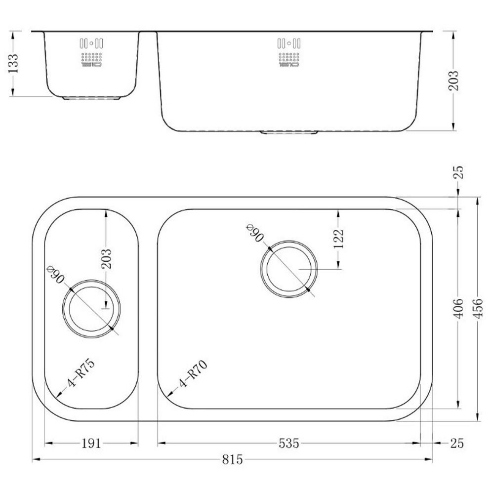 Etroduo 191/535U BBR Sink is a premium single bowl sink designed with a thickness of 1.2mm stainless steel, offering exceptional durability and a sleek, polished finish. This high-quality sink is crafted to fit a minimum sink cabinet size of 900mm, providing ample space for all your kitchen needs. The single bowl design is perfect for handling large pots and pans, making it ideal for busy kitchens. The polished stainless steel finish adds a touch of modern elegance, enhancing the overall look of your kitchen. Upgrade your kitchen with the Etroduo 191/535U BBR Sink for a blend of style and functionality.