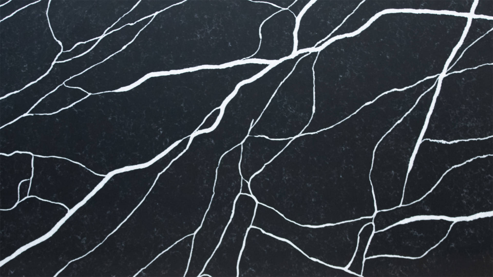 Majestic Marquina Quartz has a black background that depicts distinct and bold white veins showing dramatic movements. It is in fact, a marble-effect worktop that creates stunning styles and designs. It is a super hygienic and eco-friendly choice, resistant to scratches, and simple to clean. This luxurious surface, which is made with a blend of resins, quartz minerals and binders, is ideal for creating jaw-dropping quartz countertops in bathrooms and kitchens, as well as waterfall islands, tabletops, bars, backsplash, office desktops, reception worktops, accent walls or flooring. Majestic Marquina Quartz is stain-resistant and does not require sealing because it is less porous than marble or granite. It's a long-lasting, stain-resistant product that can be cleaned up quickly with water and soap.