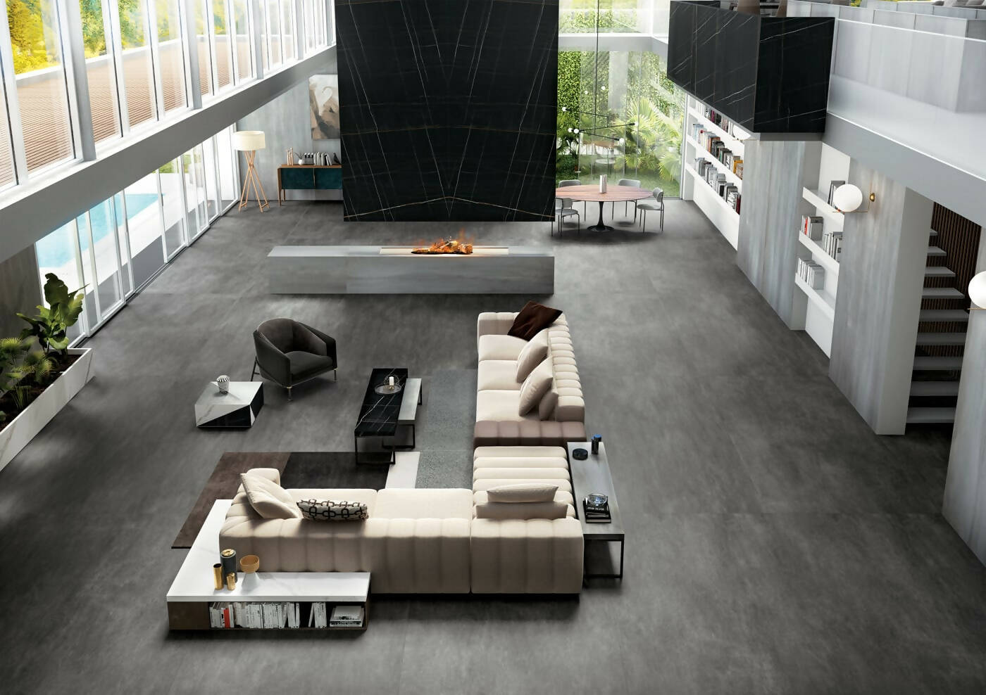 Metal Dark Porcelain is a cultured dark grey Porcelain stone with a plain pattern. It resembles a dark grey abstract adding meaning to the piece. Its gracefully simple pattern marks most places like living room floors, walls and foyers by their neutral hues that take the centre stage of the homes. Metal dark porcelain is engineered comprising of feldspar, quartz minerals, kaolinite, bone ash, steatite, petunse, and alabaster making the surface sturdy, hard, and robust for any surface. These stone tops are coated with a matt finish which is not so glossy nor absorbs light like a polished surface. Suitable for high-traffic floors, highly durable, resistant towards water, enhanced moisture resistance, and simple to clean. Metal Dark Porcelain got a dusky feature that does not show obvious stains. Their 6MM, 12MM and 20MM thicknesses keep the base stable.